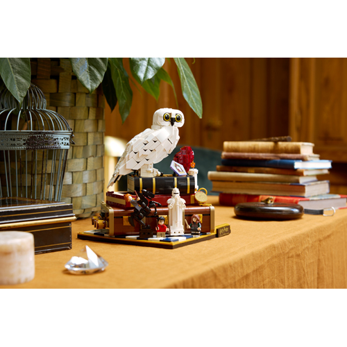 Hedwig & 3 Minifigures – Build the first-ever LEGO Hedwig snowy owl figure with closed wings as the centerpiece, plus Harry Potter, Hermione Granger, and Ron Weasley minifigures